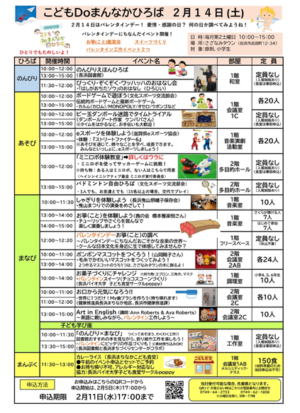 参加されるイベントの時間に合わせて、直接、各部屋まで送迎をお願いします。ただし、保護者の方のご判断で、お子さん自らが参加できるとされる場合は、この限りにありません。なお、午後3時をもって、すべてのイベントを終了とさせていただきます。