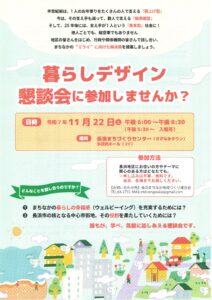 長浜まちなか地域づくり連合会主催、長浜市共催の「暮らしデザイン懇談会」が2025年11月22日(土曜)18時~20時45分にさざなみタウン多目的ルームにて開催されました。