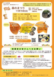 子ども学び座で長浜まちなかと湯田地区合同イベントとして、第2回森のまつりが快晴のもと開催されました。